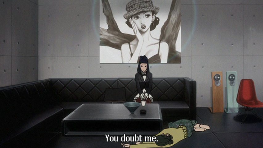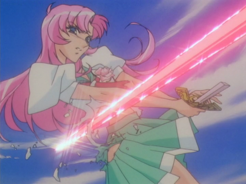 Oh, she hides it well, most of the time.  When Utena says, “They say that you’re trouble, and those who know your hidden face wouldn’t get within 10 meters of you,” she laughs it off, responding, “Heh, makes me sound like a wild animal.”  But it is this rage that forces her to become an unwitting tool of the patriarchal system of dueling to possess the Rose Bride.