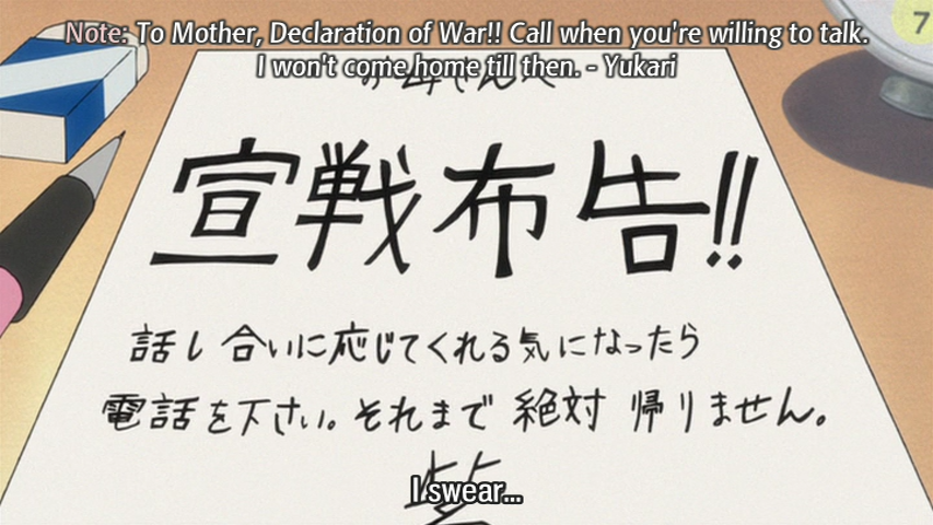 Only a few days later, Yukari runs away from home to escape her mother’s control, the first step in her enormous personal transformation into a determined, independent young woman.