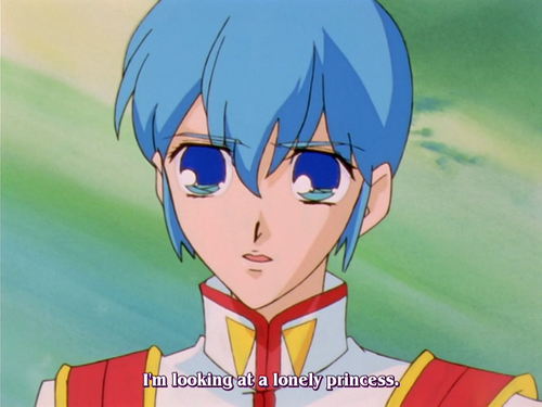 Anthy watches as a passive observer throughout the whole fight.  She thinks on how she pities Utena, wondering at how she doesn’t realize how futile it is.  She stands on the sidelines, expression unchanging, until Touga has Utena kneeling on the ground, mercilessly driving his blade through hers for a second time.  Her eyes widen, and Dios’s silhouette flashes as she things, “It’s like what happened that time…”  She sees Utena’s determination, even in the face of insurmountable challenges, and it reminds her of what true princeliness is. Her spell over the sword breaks, a tear falls from her eye, and Utena is able to throw Touga off and slice the flower from his pocket.  “I’ve taken back what I was,” a victorious Utena tells Touga.  It is through the power of women – Juri’s sword, Utena’s will, and Anthy’s emotions and memories – that he is defeated.  It’s a fitting end for the most consciously misogynistic and manipulative of Utena’s opponents.