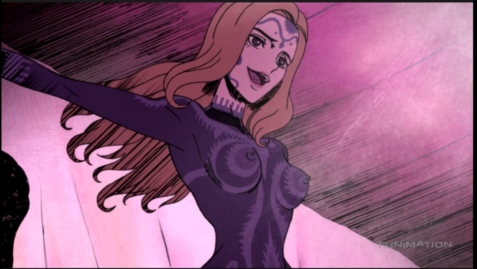 Fujiko, at learning Aisha’s foiled plan, smiles and says, “The occasional failure adds to my feminine charm, doesn’t it?” Her playful, cavalier demeanor is that of Fujiko early in the series, before she encountered the tattooed woman. As it turns out, all her memories returned, including the ones from before she came to Aisha’s mansion as a maid. “Thievery and casual sex were my scene long before I met you. No matter what past anyone feeds me, I’m still myself. You’re looking at the woman called Fujiko Mine.” Her narrative is her own, and not what was created by Aisha.