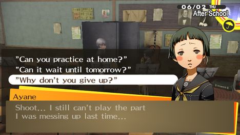 Facing their Shadow isn’t the end of each character’s arc, however, and each one receives further examination in the game’s social links. It is up to the player to decide which social links they want to pursue – other than the three out of the game’s twenty-one social links (twenty-three in Golden) that are advanced by the plot – although players skilled at time management may be able to complete all of them in a single playthrough. Each link is connected to one of the Major Arcana of the Tarot and allows the player to fuse stronger Personas, but that is far from the only reason to pursue them. For me, the social links were the biggest draw of the game, the real meat of it. Each character – some figure prominently in the plot, others are purely peripheral – slowly opens up to Yuu, revealing their issues and, with his help, resolving them. The social links are incredibly well-written, with each character fully rounded and human, sometimes to devastating effect. They are advanced more quickly by tailoring your responses to each character, picking the option that they will respond best to. At a glance, this may seem insincere, but in reality, treating each person with sensitivity to their individual needs is an important skill; jokes about my legally blind boyfriend’s eyesight would not go over well with, say, a disability advocate whom I just met. When moving through a world populated with a huge variety of people, true equality is not just bulldozing through with identical approaches to everyone, but to sincerely treat everyone how they need to be treated.