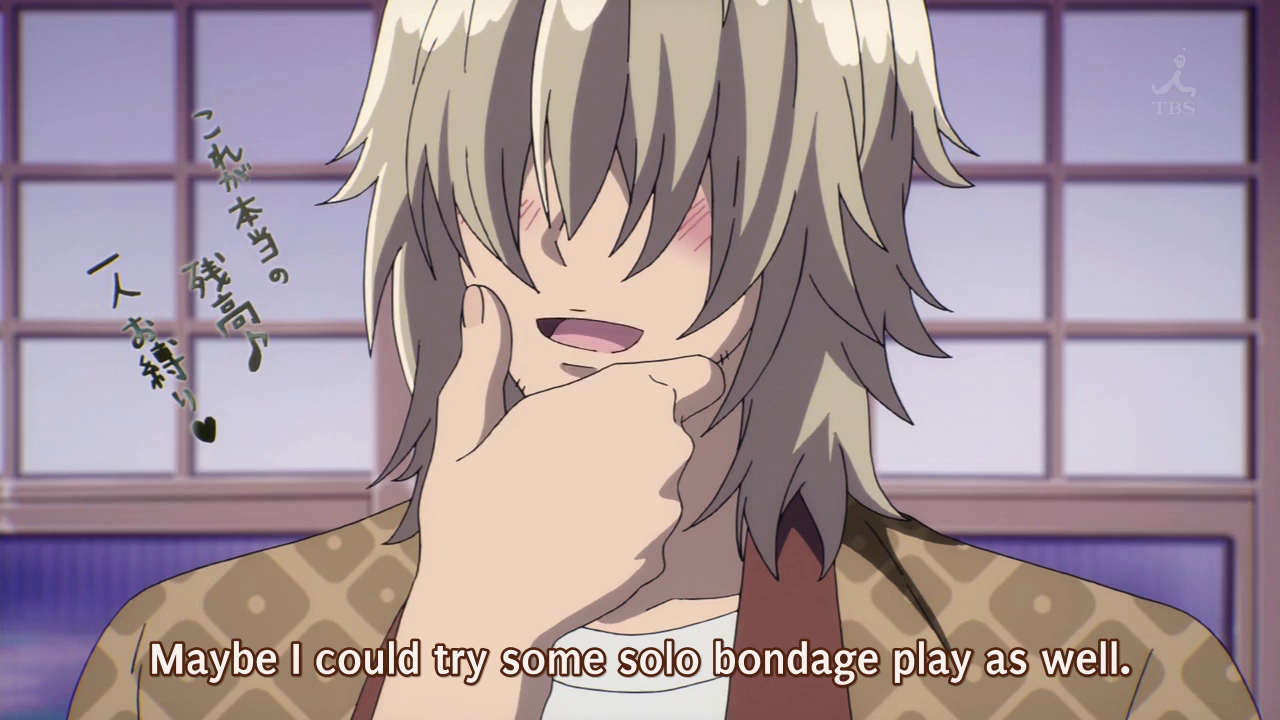 Meanwhile, in many harem anime, the male character is in fact punished for gazing on a woman, regardless of his intent. To illustrate this, he showed clips from Love Hina – specifically, the scene in the beginning where Keitaro stumbles on Naru in the bath and she mistakes him for her female roommate Kitsune and, when she realizes her mistake, freaks out and drags him around by the penis – and Bokura wa Minna Kawaisou, the content of which I cannot be arsed to remember other than that it was trash of the same caliber as everything else he showed. “The self-insert male lead averts his gaze and/or is punished, subverting notion of women as sex objects is a kind of ‘training’ for male viewers,” he claimed. Rather, masochist male characters are further objectifying to men. Which, again, is a trash assertion. It doesn’t change that there is a naked woman displayed for the pleasure of male viewers on the screen. Her anger is a sign of her lack of consent, which for many only sweetens the pot. In Japan, phone cameras by law have to make a sound when you take a picture because there was such an epidemic of covert upskirt photography. Clearly, these men don’t fear violent retaliation for their illicit gaze. Furthermore, the girls are usually tsundere and over time end up falling for the male protagonist – the violence is only a symptom of their reluctant feelings. Yes, the downplaying of female-on-male violence is a problem and can reach disturbing levels; I remember a moment in Love Hina later in the series when Keitaro starts crying and apologizing for accidentally seeing another girl naked, and is surprised when the punch never comes. That’s really awful and reflective of real life abuse! But to claim that it is objectification of men, and that men are more objectified than women is wrong wrong wrong wrong wrong.