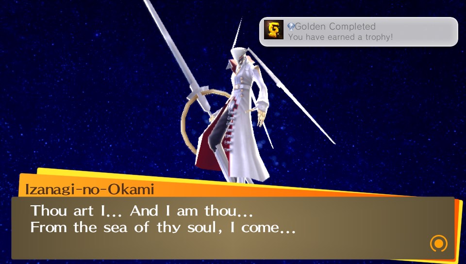 The end of Persona 4 is idealistic. We are a long way from destroying prejudice and falsehoods in our world, assuming that’s even possible. It’s a struggle both external and internal, as we combat not only harmful representations and stereotypes, but also the biases and unrealistic expectations we internalize. Nonetheless, it’s still a goal worth keeping in sight and fighting for: a world where people can be their true and authentic selves, and can accept their full identities, flaws and all. Persona 4 is not a perfect game and, on occasion, falls short of its own philosophy, but with witty writing, effective use of symbolism, and depth of character unparalleled in gaming, it is well worth the 60+ hours it takes to play.