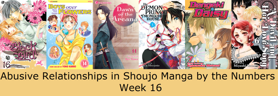 Tsukushi is effectively under Domyoji’s control the whole time. She’s living in his house, learning from his tutors, trying to pay back money he loaned her. It shows exactly what he ultimately wants from her: a girl who, while she goes through the motions of putting up a fight, does what he wants and when. If Tsukushi actually defies him, he turns violent and abusive; if she shouts and fusses before ultimately giving in, he’s “admiring her spirit”. The lesson comes through loud and clear: be a “strong woman”, but only so far as it doesn’t get in the way of romance. I don’t want to totally discount Tsukushi’s strength – she’s incredibly self-reliant and stands up for herself in the face of adversity, plus she supports her family for the last two volumes – but ultimate goal of the series is for her to submit to Domyoji.